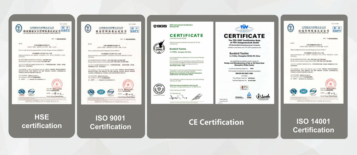 we own two production bases, one in Yuanjiang city, Hunan province and the other in Zhuhai city, Guangdong province, as well as five branches oriented in yacht design and sales respectively. The five branches are Raphael Changsha, Rimbaud Bay Shanghai, Plandy Hong Kong, Plandy America and Marco Polo Italy. It covers 370,000 square meters in total, wherein 310,000 square meters in Hunan province and 60,000 square meters in Zhuhai city, also we have more than 900 employees including more than 100 R&D technicians and designers. Owning more than 200 sets of imported ship models, molding machines and composite materials testing machines, JNCN YACHTS is able to build 1000 boats per year and is the record holder in China with more than ten thousand boats sold locally and abroad 18 countries and regions. Sunbird yacht became Famous Trademark of China in May, 2011.